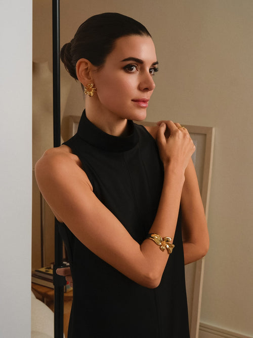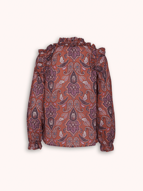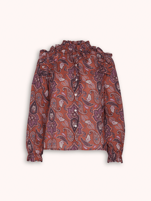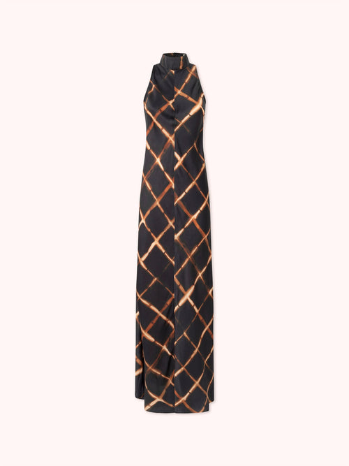 VESTIDO DRAPEADO DE TUL ESTAMPADO MARRÓN