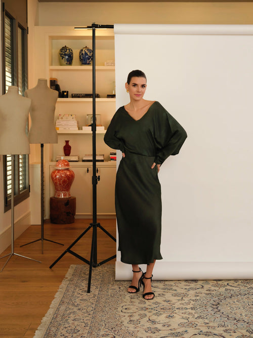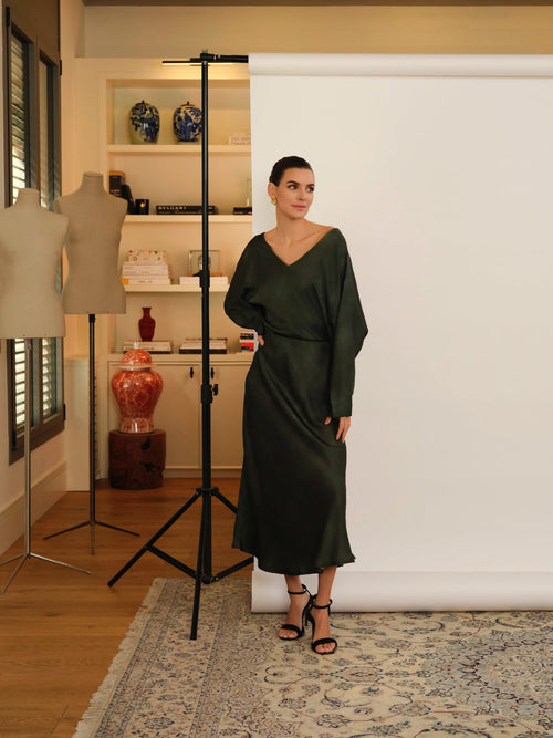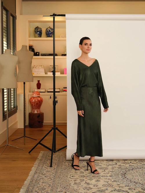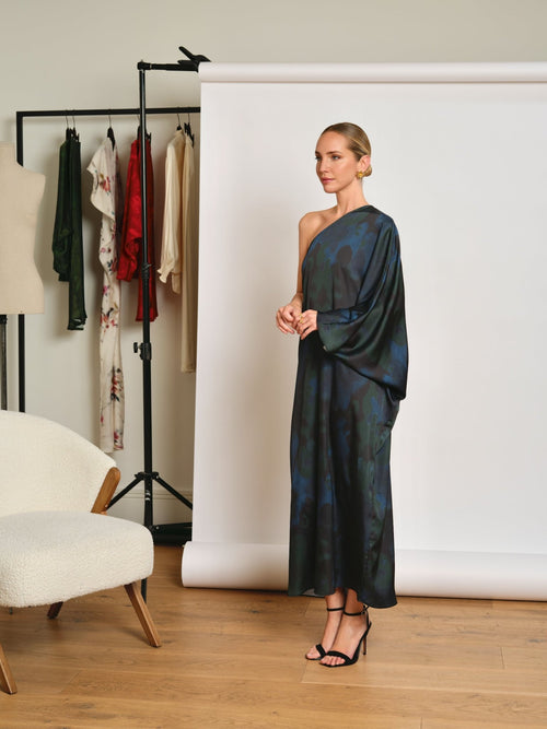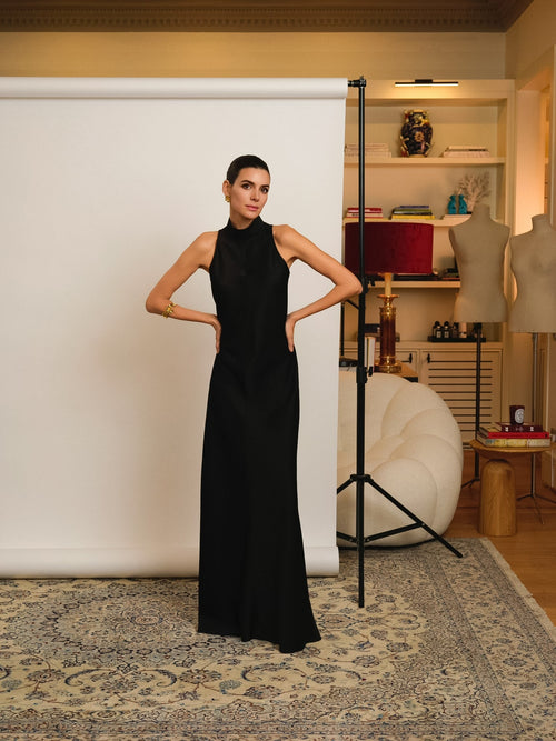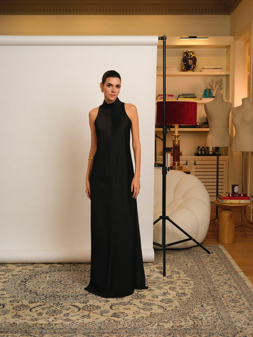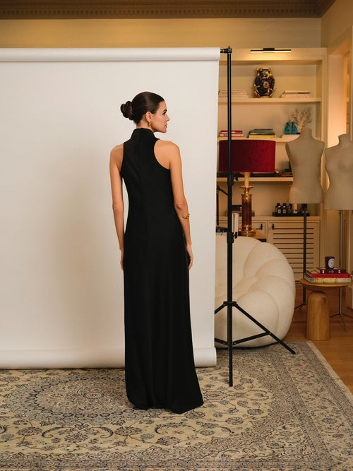 VESTIDO LARGO ASIMÉTRICO NEGRO