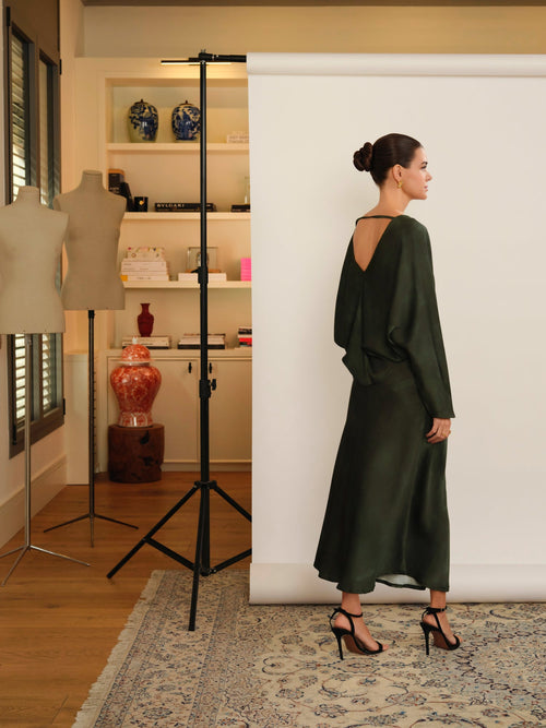 VESTIDO OFF SHOULDER DE TUL VERDE