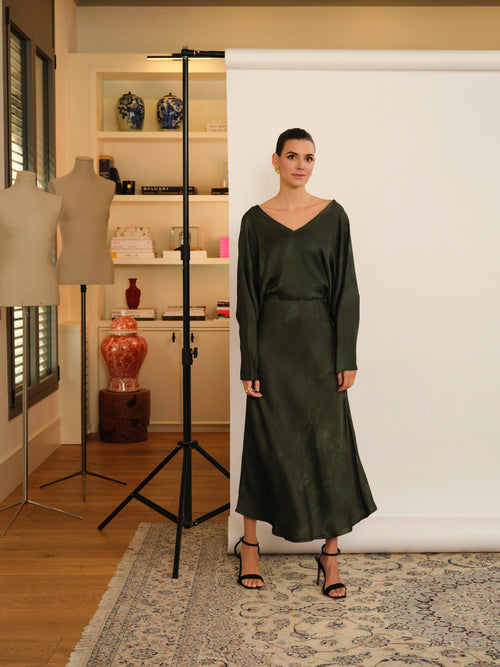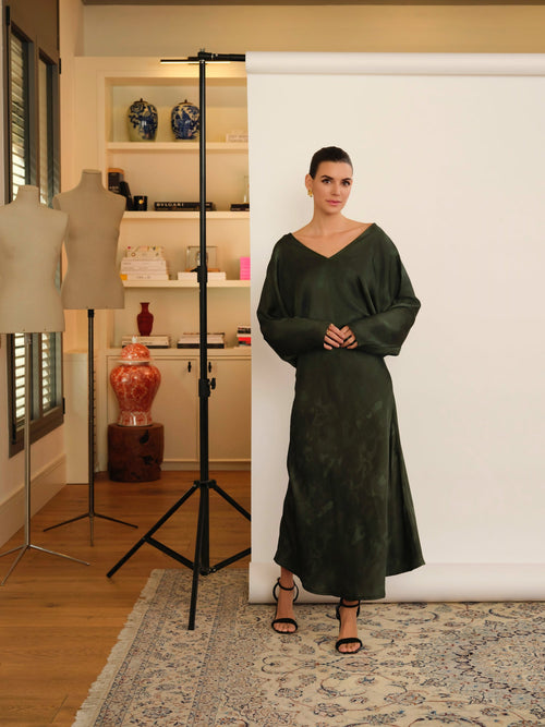 VESTIDO LARGO ASIMÉTRICO GRANATE