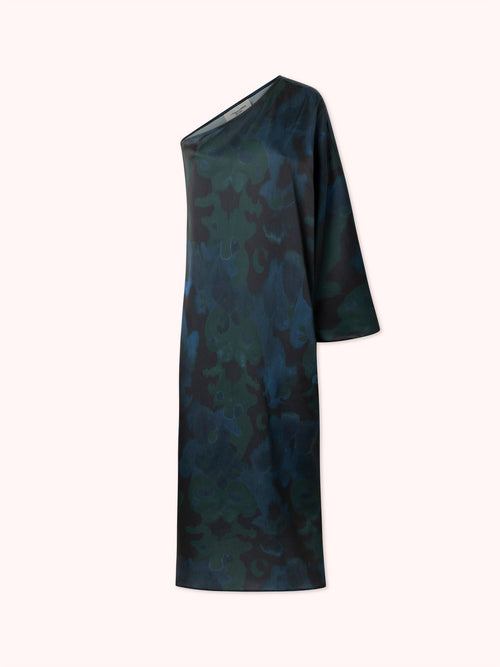 VESTIDO DRAPEADO DE TUL CON ESTAMPADO FLORAL AZUL MARINO